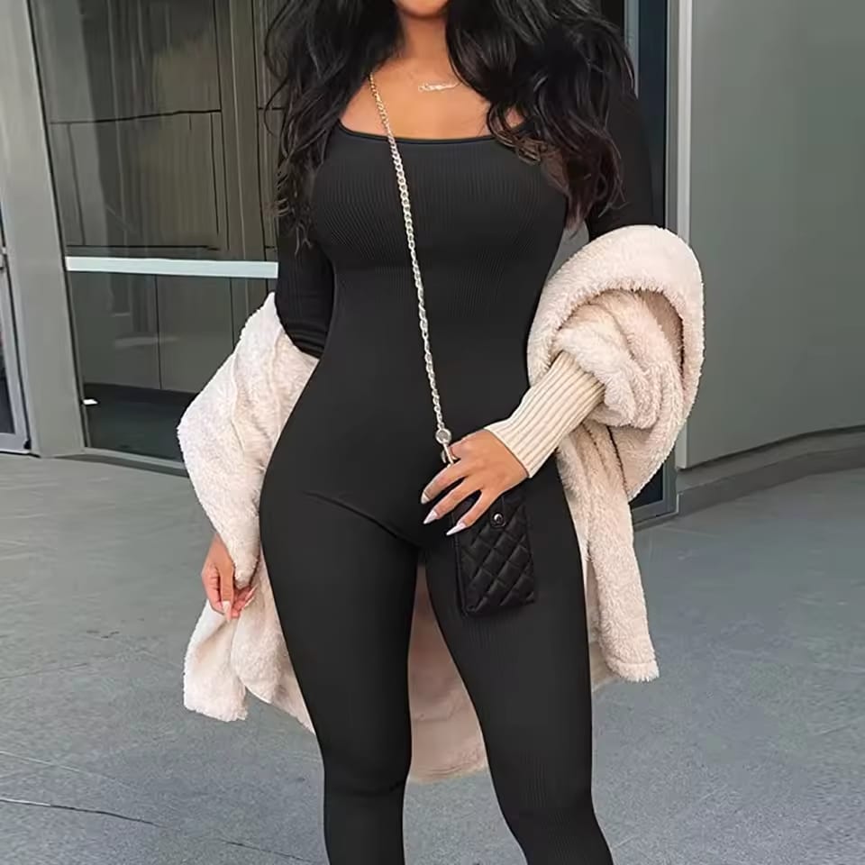 2.Square Neck Sport Bodycon: The long sleeve square neck design of these jumpsuits not only enhances your silhouette but also ensures a secure and comfortable fit, allowing you to focus on your workout.